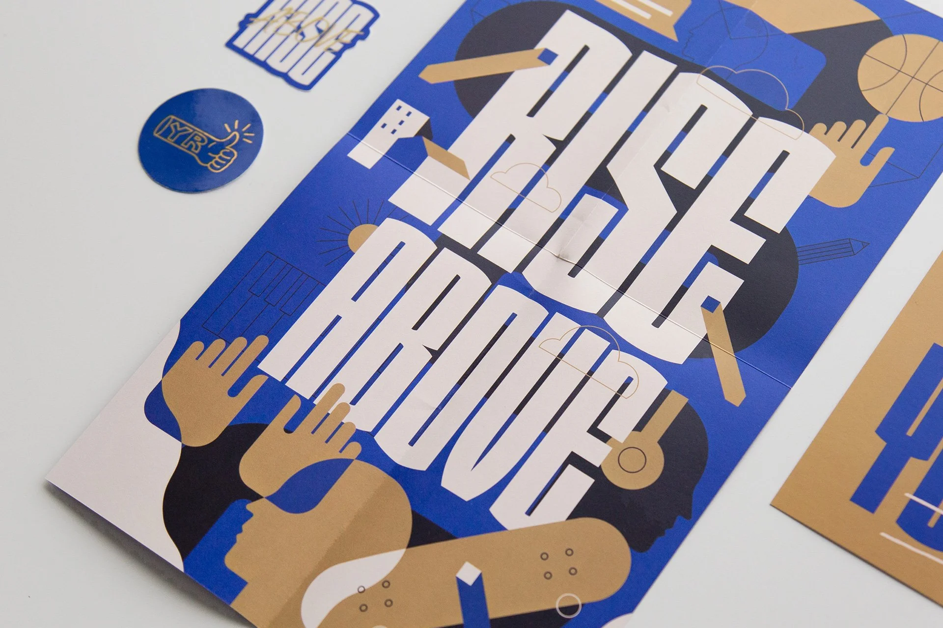 In order to lay the foundation for the language of Youth Rise, we appropriately named their 2nd annual fundraiser 'Rise Above'. Their decision to provide both an online and in-person experience was carefully considered, as they understood the importance of effectively conveying their message. To accomplish this, we created a visual language utilizing a kinetic condensed typeface, accompanied by a series of scribbled arrows and illustrations. These elements were deliberately chosen to serve as a reminder to their donors that every young individual's journey is unique. With their generous support, they can empower these youths to overcome their circumstances and unlock their potential for success.